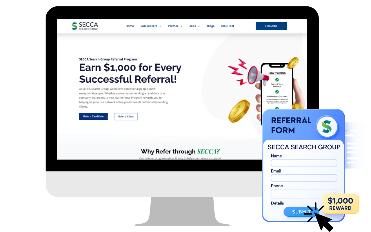 At SECCA Search Group, we believe exceptional people know exceptional people. Whether you’re recommending a candidate or a company that needs to hire, our Referral Program rewards you for helping us grow our network of top professionals and industry-leading clients.